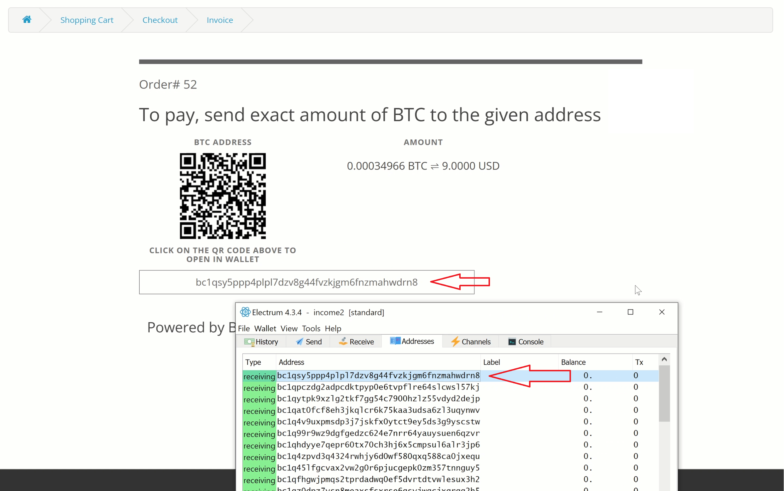Direct payment: Payment goes directly from your customer’s wallet to the merchant’s (your) wallet that you provide. So you can use any software or wallets you want to receive Bitcoin payments or any other crypto.