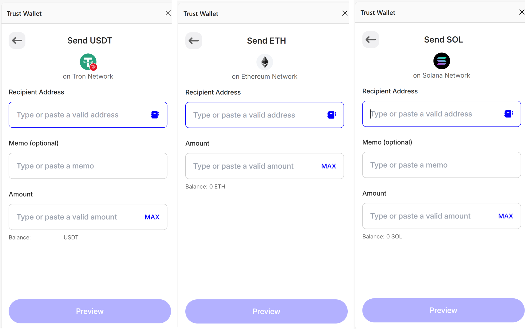 Trust Wallet supports a wider range of blockchains natively, including Bitcoin, Solana, and BNB networks. MetaMask mainly supports EVM-compatible networks such as Ethereum, Polygon, and Avalanche.